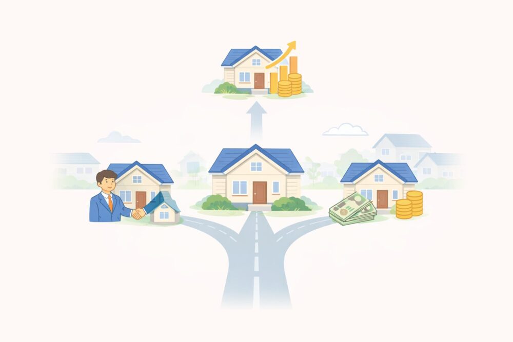 不動産の出口は、仲介売却だけではありません。買取・収益物件化など、状況によってはより有利な選択肢が存在します。本記事では、千歳市の戸建て売却において代表的な3つの出口を比較し、あなたの状況に合った選び方を整理します。